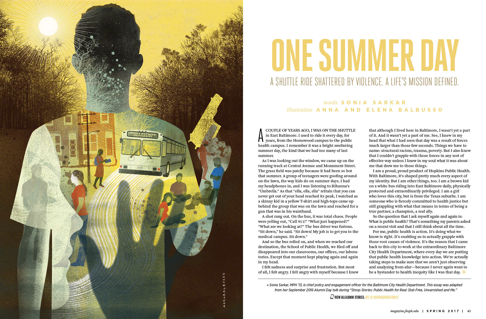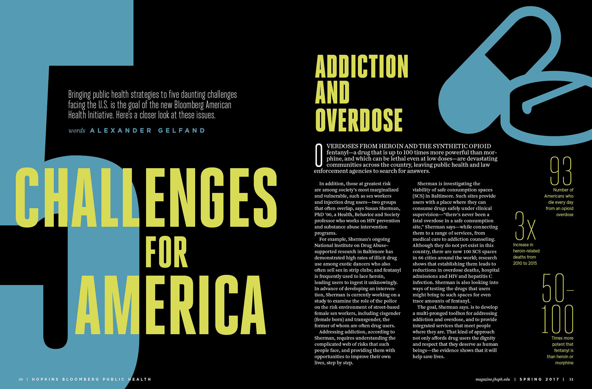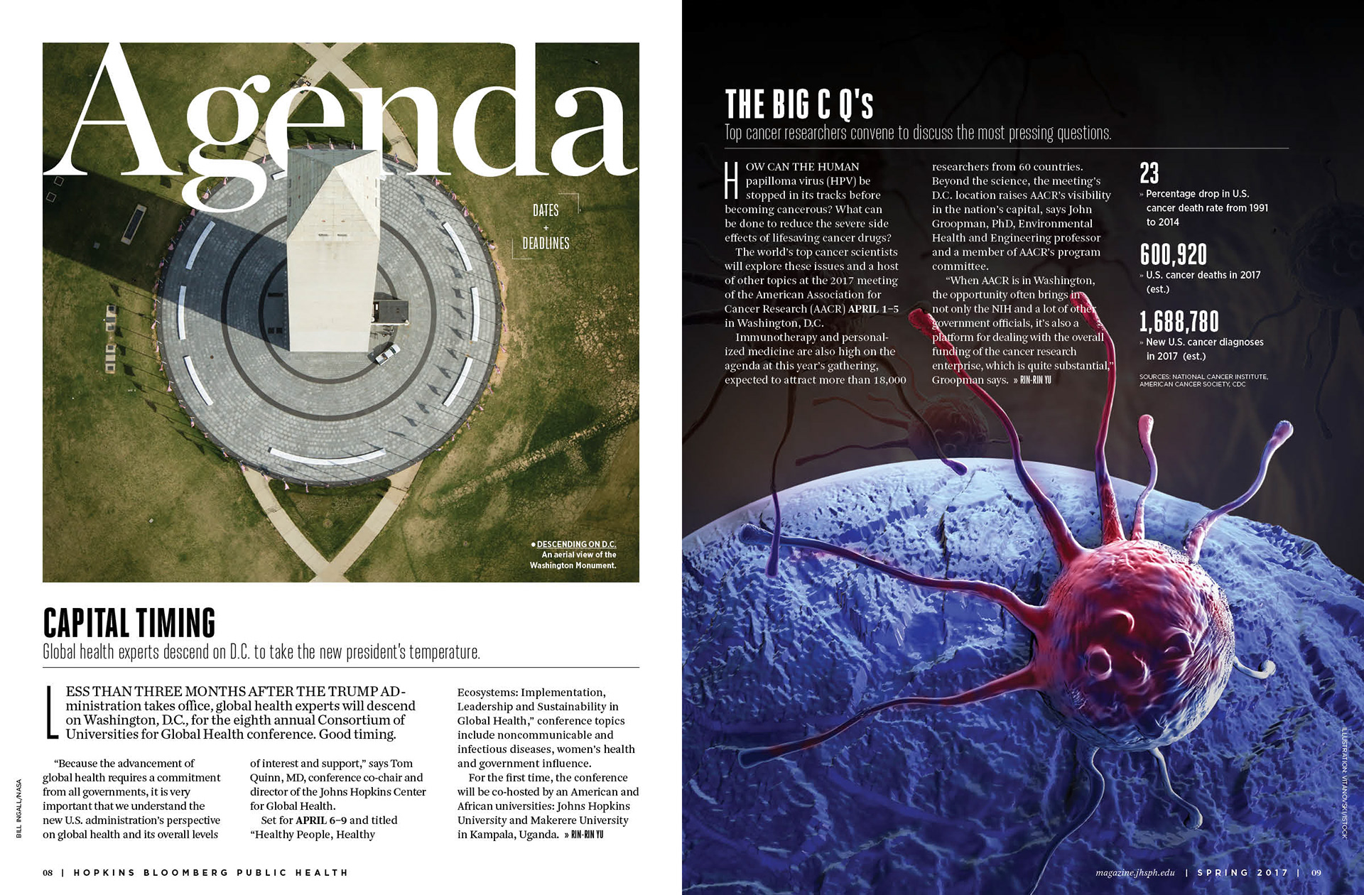 Art direction, design, and layout for the spring 2017 edition of Hopkins Bloomberg Public Health magazine, a publication of the Johns Hopkins School of Public Health