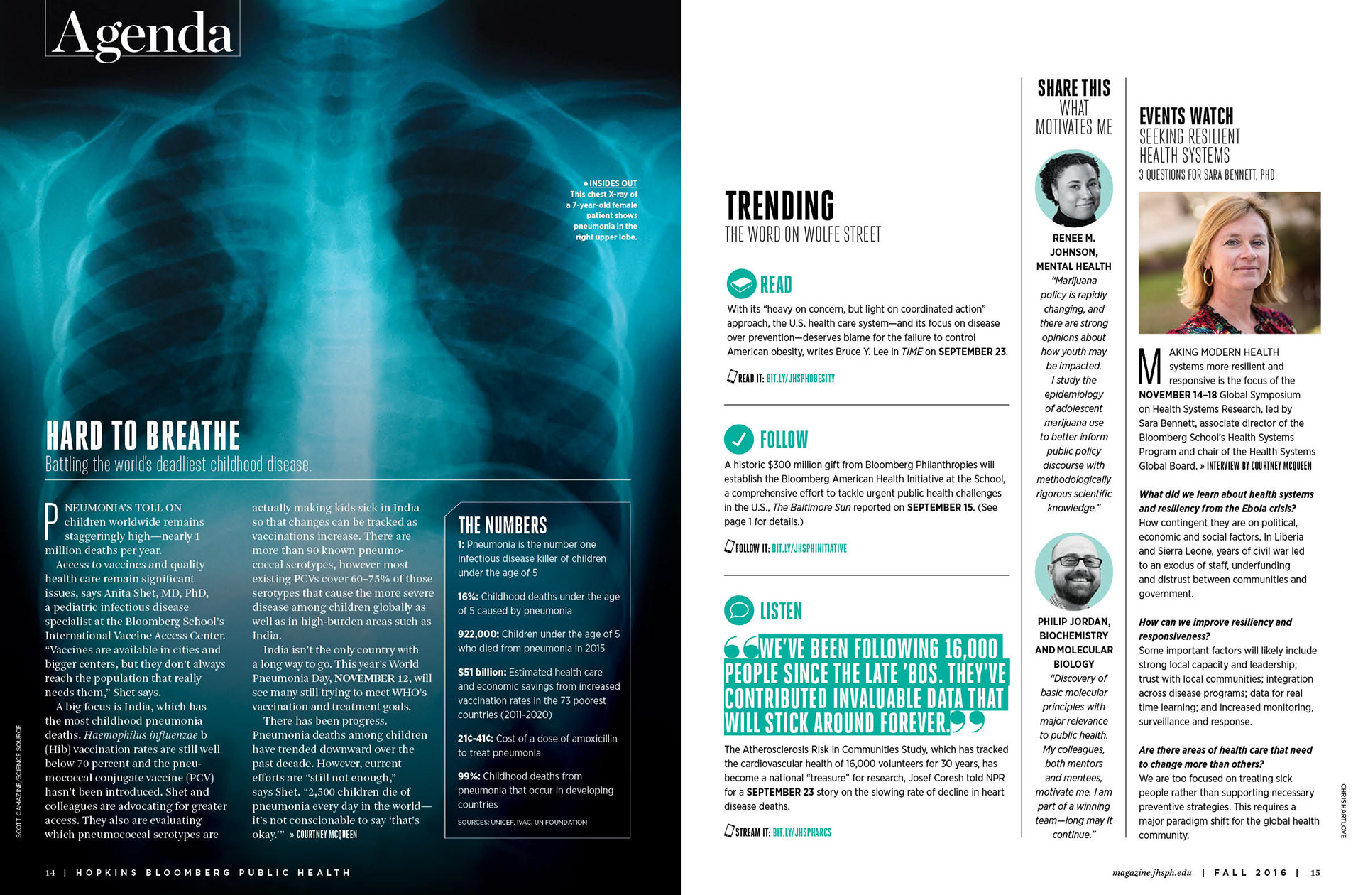 Fall 2016 issue of the magazine of the Johns Hopkins Bloomberg School of Public Health.