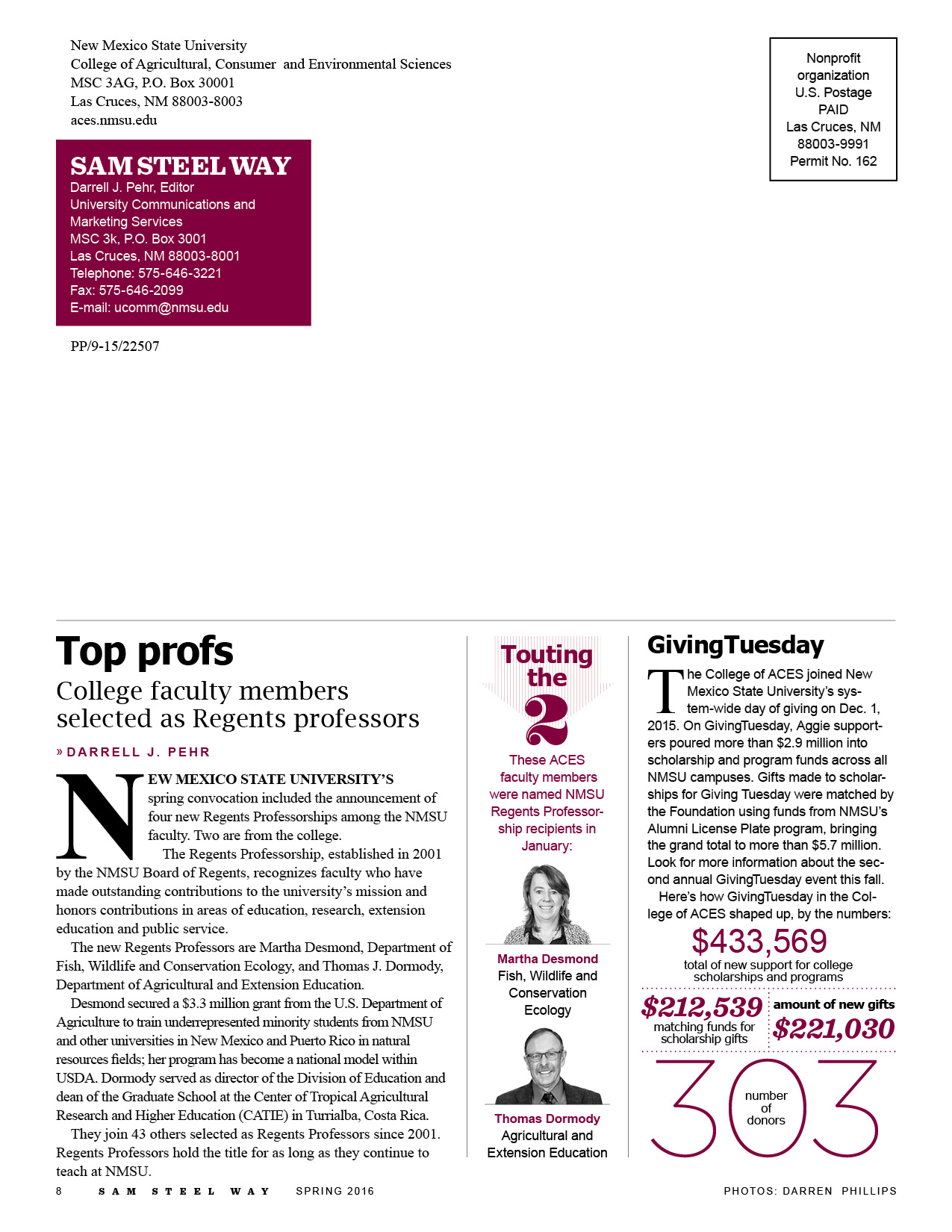The redesign of a biannual alumni newsletter for New Mexico State University's College of Agricultural, Consumer & Environmental Sciences